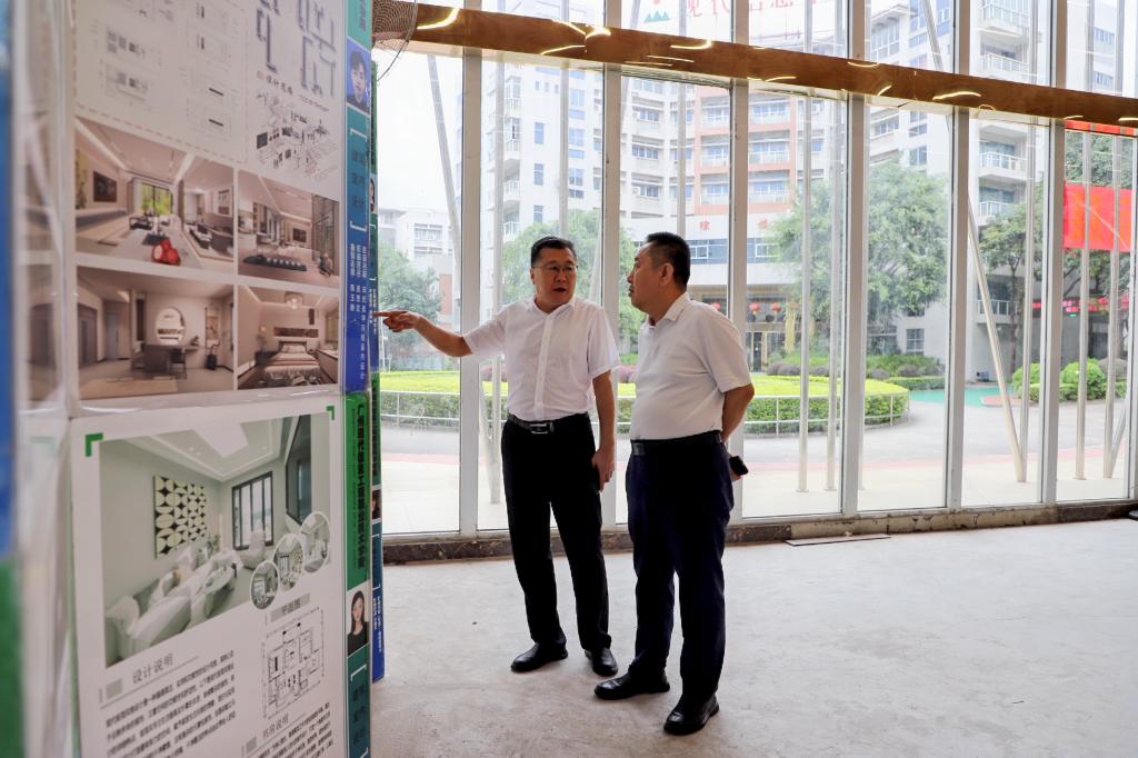 在建筑与艺术学院院长罗新华的陪同下,校领导仔细观看了展览作品。朱志坚对毕业生们将专业知识与社会需求相结合的创新实践表示赞赏,特别肯定了作品中体现的可持续发展理念和地域文化特色。他指出,这些作品展现了建筑与艺术学院的教学成果,也让大家看到了未来设计师的社会担当。马士杞在参观时强调,希望建筑与艺术学院继续深化产教融合,培养更多高素质技术技能人才。