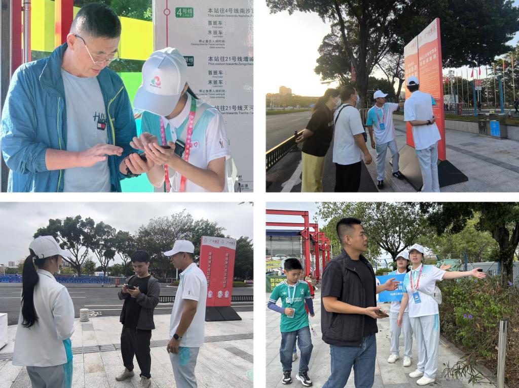 在地铁站出入口、公交站以及沿线路段等关键点位,志愿者们化身羊城“文明使者”定岗值守,为乘客们答疑解惑、指引路线。他们提前准备好饮用水、应急药品等物资,为市民们提供贴心服务。