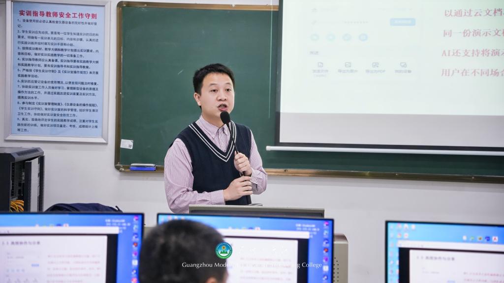 我校信息工程学院钟海东老师为学员讲课,通过具有强实用性的《基于AI的WPS演示文稿制作技巧分享》的课程,进一步引导学员提升利用信息技术改进教学的意识与能力。