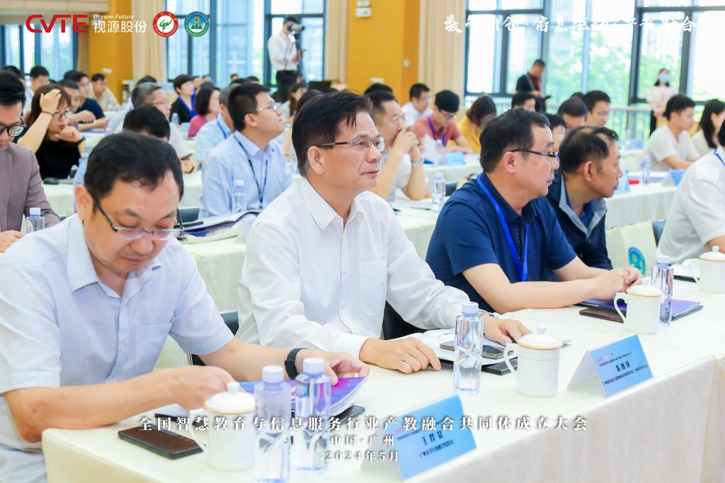 2024年5月31日,以“数智引领•信息驱动•产教融合”为主题的全国智慧教育与信息服务行业产教融合共同体成立大会在广州视源电子科技股份有限公司第二产业园三楼报告厅成功举办。来自全国各地的普通高校、职业院校、行业相关企业、科研机构的嘉宾代表齐聚一堂,共探产教融合,构建全国智慧教育与信息服务行业人才培养新生态。