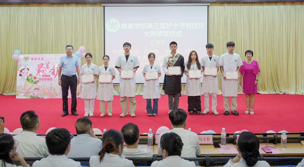 为了弘扬南丁格尔精神,传承护理文化,丰富校园生活,激励广大护理学子继承和发扬护理事业的光荣传统,在第114个“5·12”国际护士节到来之际,我校健康学院于2025年5月8日在学术报告厅隆重举行了第三届护士节暨技能大赛颁奖仪式。学校党委副书记、校长朱志坚,学校党委书记朱灿焕,学校党委副书记、纪委书记、副校长王宇川,副校长马士杞、何曙辉,党委委员、副校长李中庆,健康学院党总支书记、院长王充以及健康学院全体师生参与本次活动。